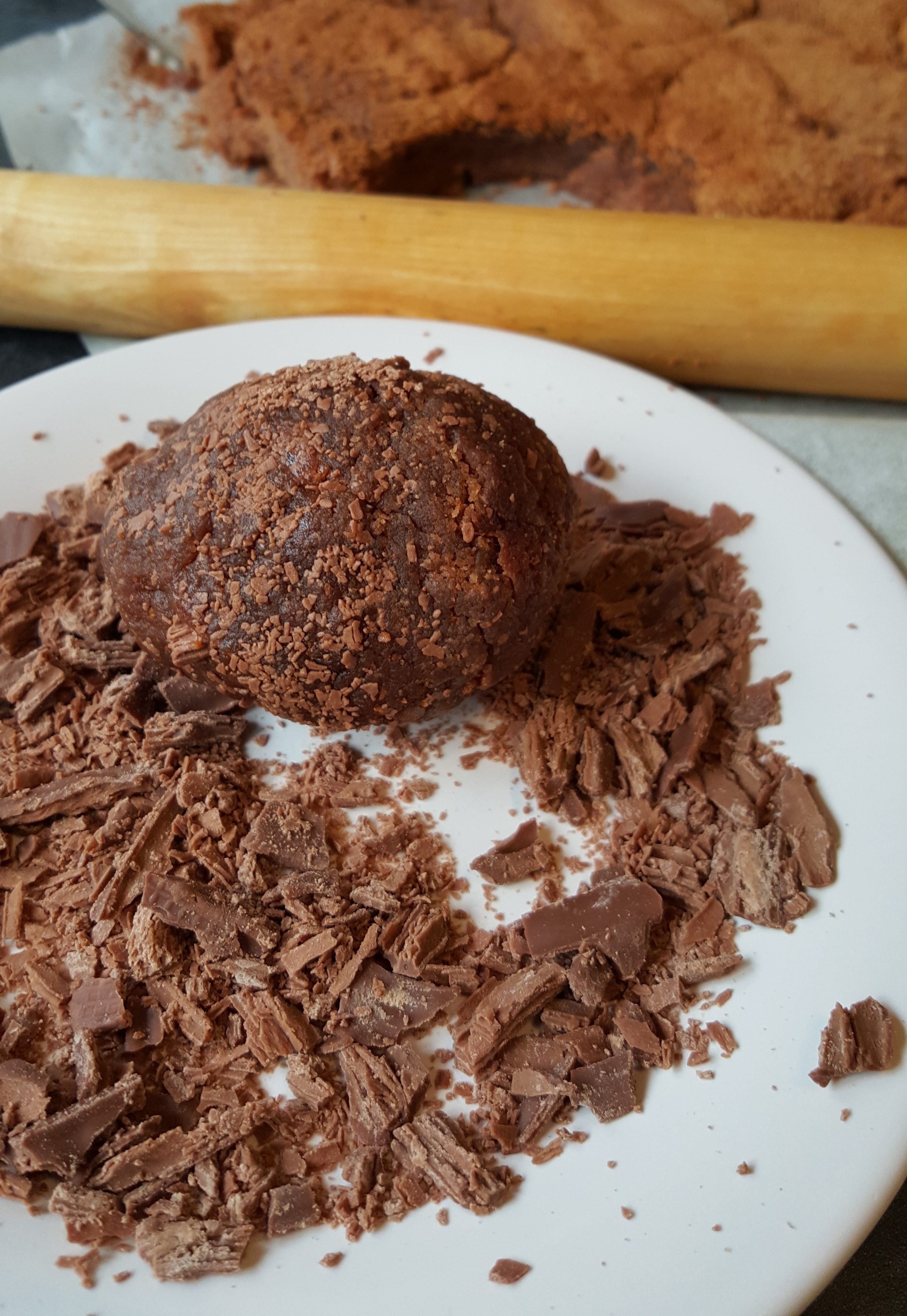 - With the rolled-out brownie in the palm of your hand, place a Creme Egg in the centre and mould the brownie around the Egg until completely covered, then roll the Scotch Brownie Creme Egg in the Flake.