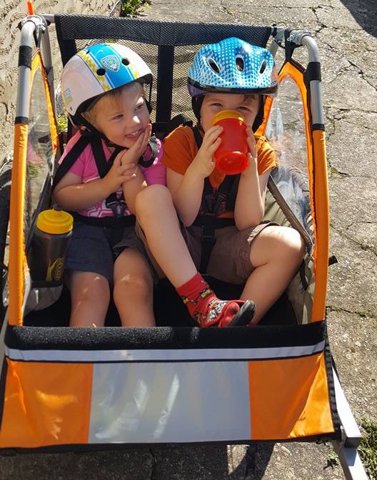 The Husband likes going for bike ride once the boys are in bed; but he thought it might be nice if he took them on some during the days he had off work too. So he bought one of those bike trailers, a double one of course. They went out a couple of times and although it was nice to have some me time, I actually felt a bit left out, ha! So we bought a new cheap bike for me too. We managed to have a lovely ride all the way to a nearby village (3 miles away) to feed the ducks!
