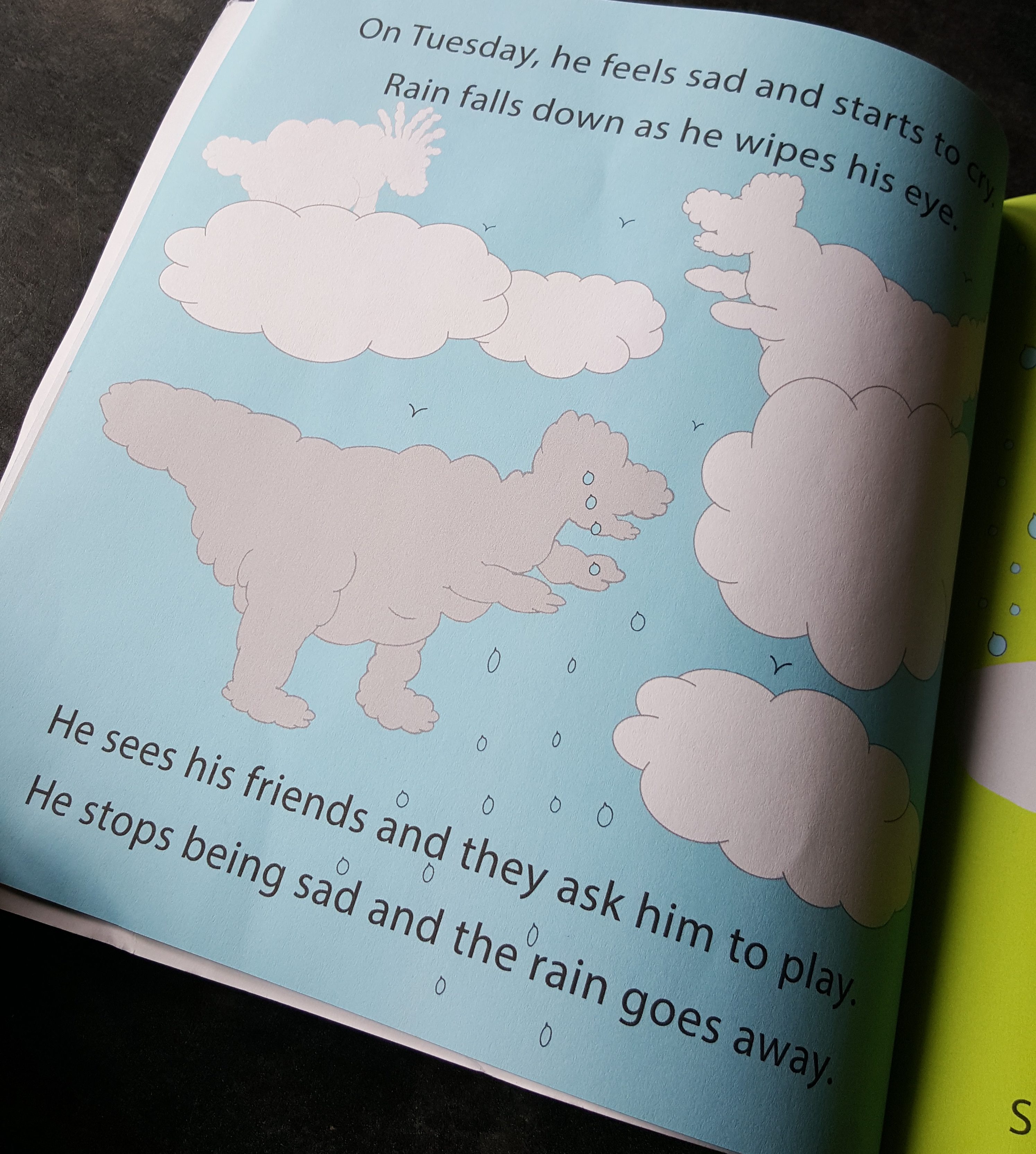 A fun rhyming action book, perfect for children aged 3 – 6 years who love to join in with the actions and the rhyming verse as they learn about other people’s feelings, the days of the week and the weather. Blurb: May, Adelle and Eddie go outside to play, but the weather keeps changing every day. They see a Cloudosaurus Rex, king of the sky: it’s he who decides if it’s wet or dry. You can learn the days of the week together, as the Cloudosaurus Rex changes the weather.